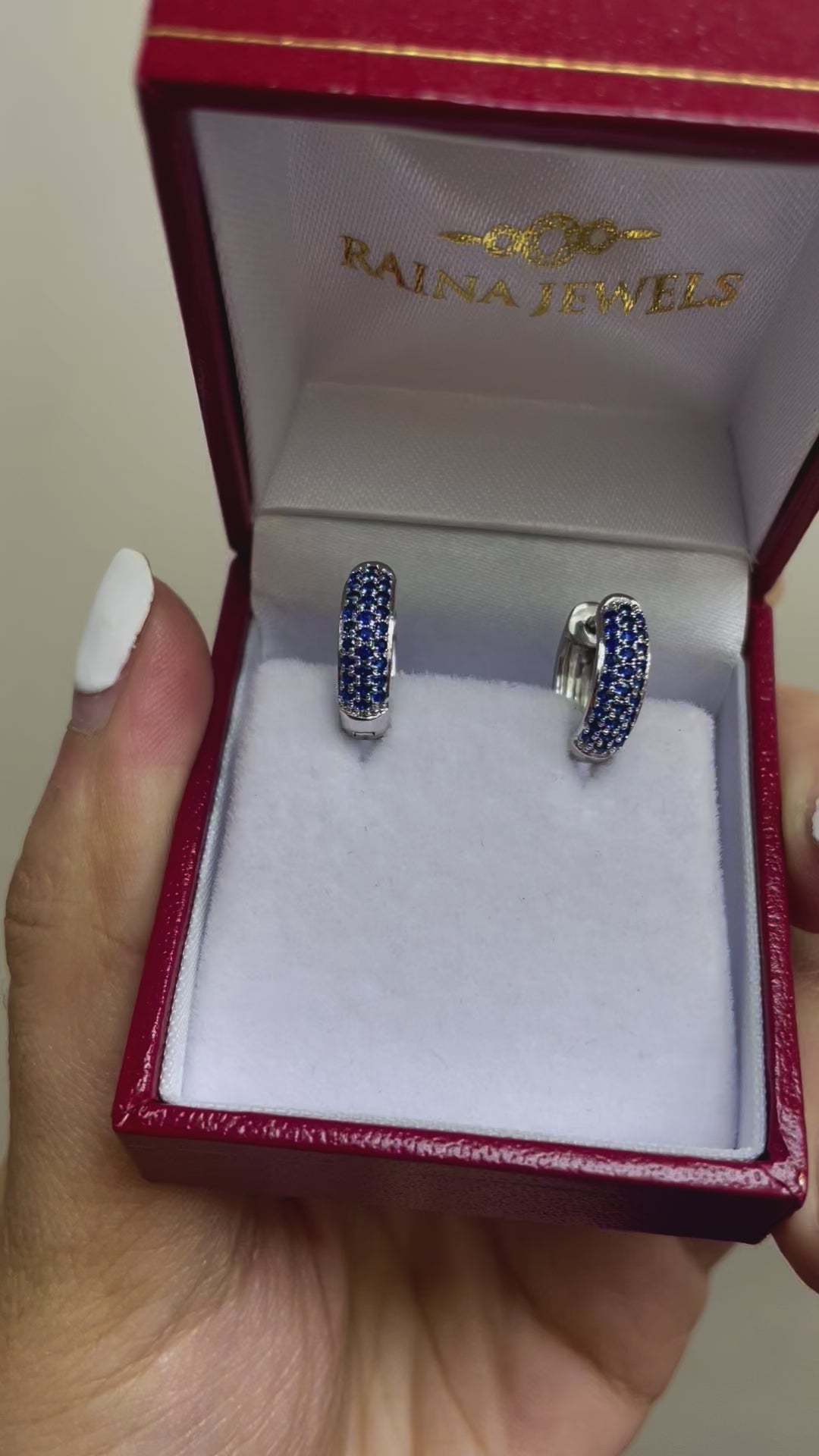 An Elegant Pair of Blue Sapphire Hoop Earrings made in 14K White Gold, set with 0.33ct