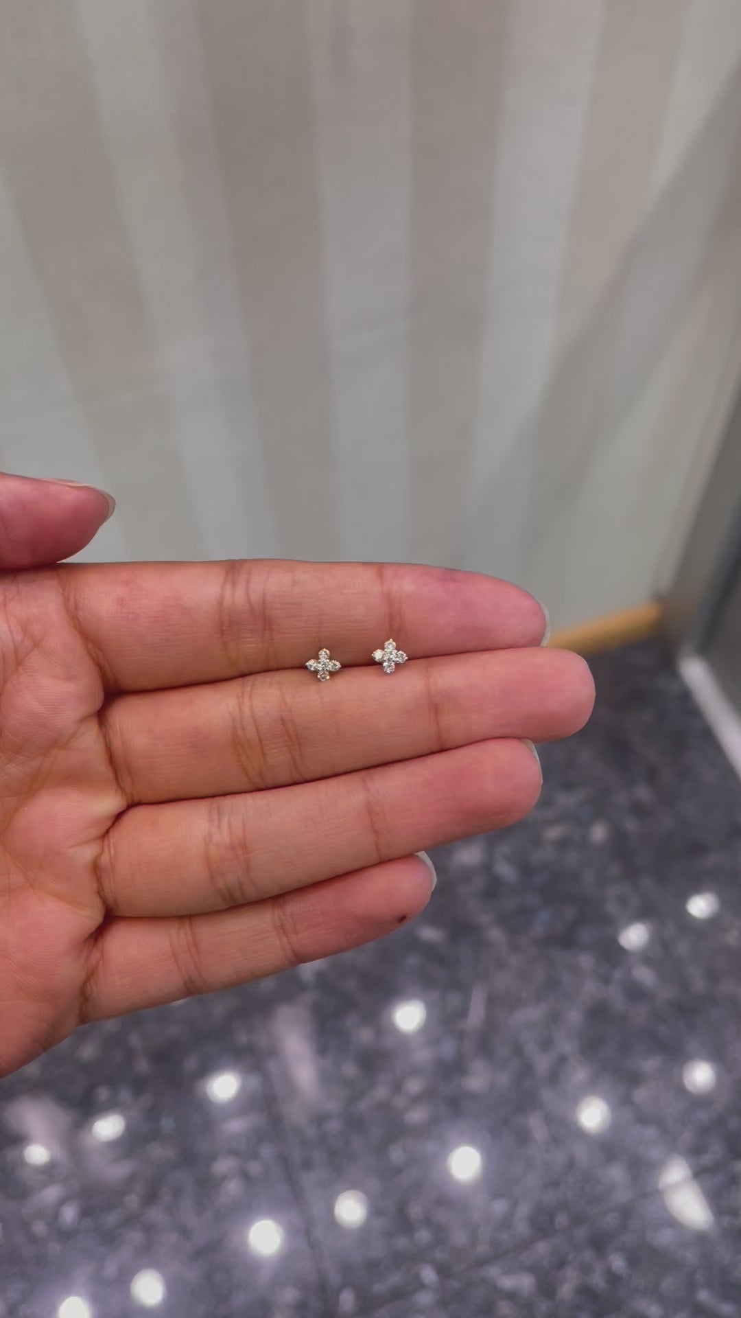 18ct White Gold Round Diamonds Fancy Flower Earrings Studs 0.16ct