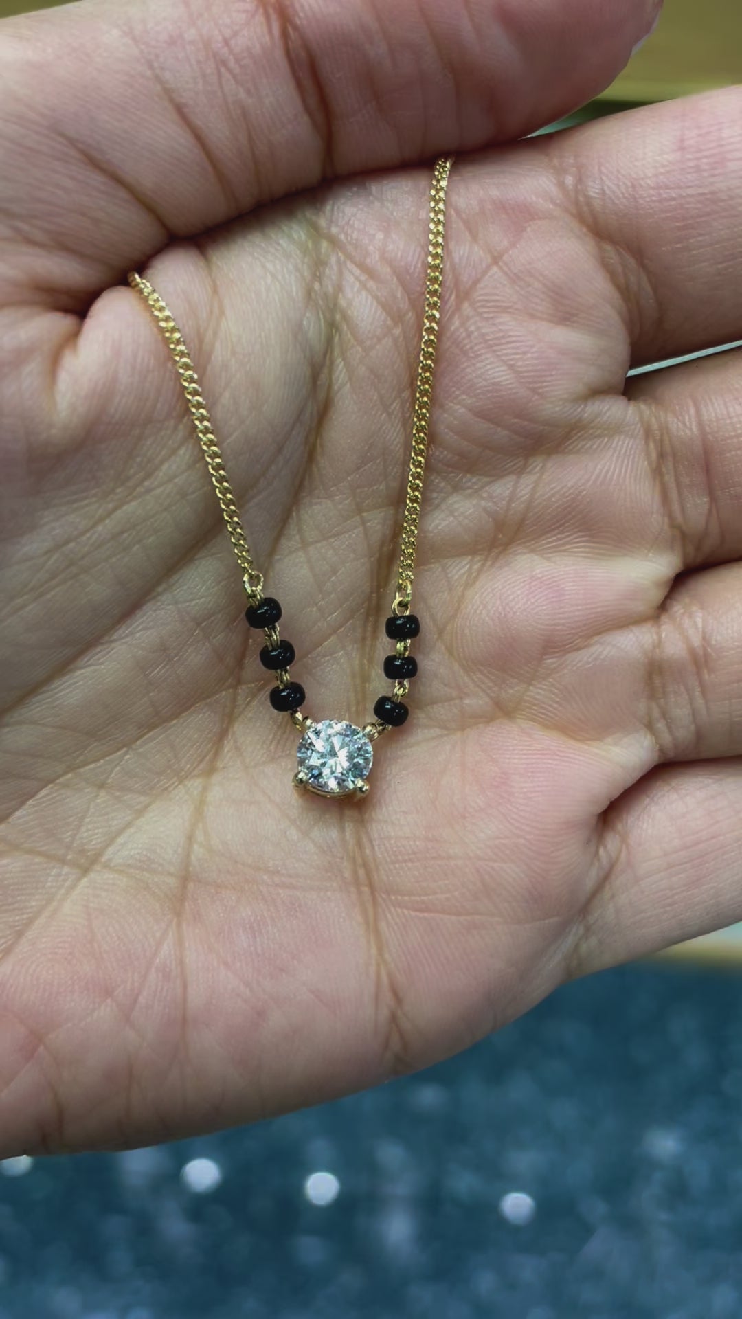 18ct Yellow Gold Lab Grown Diamond 0.70ct Black Beads Solitaire Mangalsutra Necklace
