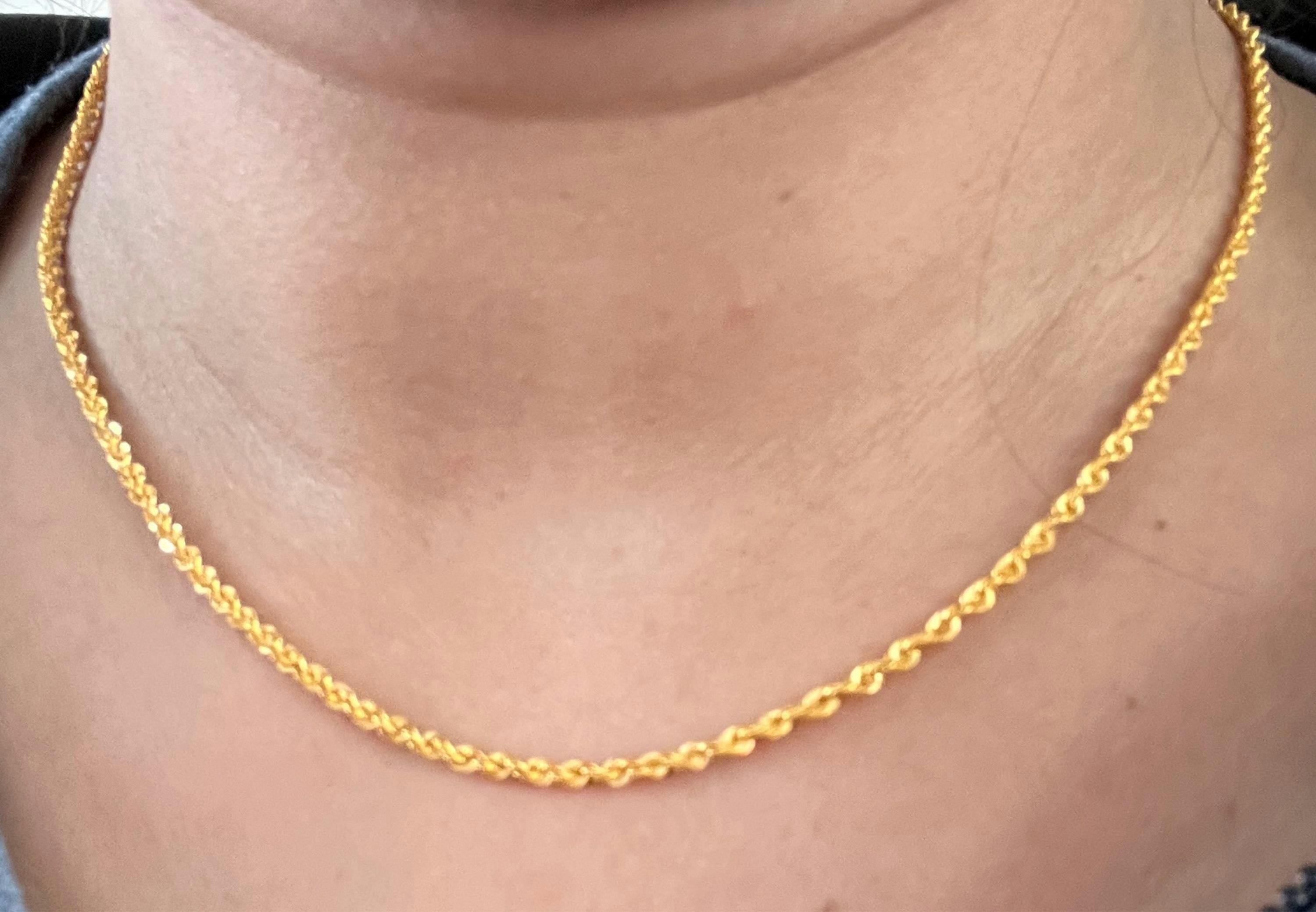 22ct Yellow Gold Lightweight Hollow Rope Chain Necklace 16 Inches 2.2mm Width